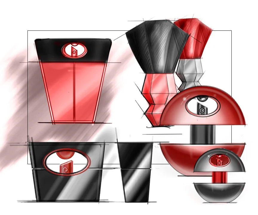 Misses and Mister are fragrances designed for the Incredibles brand. Drawn from combination of inspiration from The Incredibles concept art and high-end perfume designs, Misses was created from conception, rendered in Solidworks and 3D printed, sanded and painted.