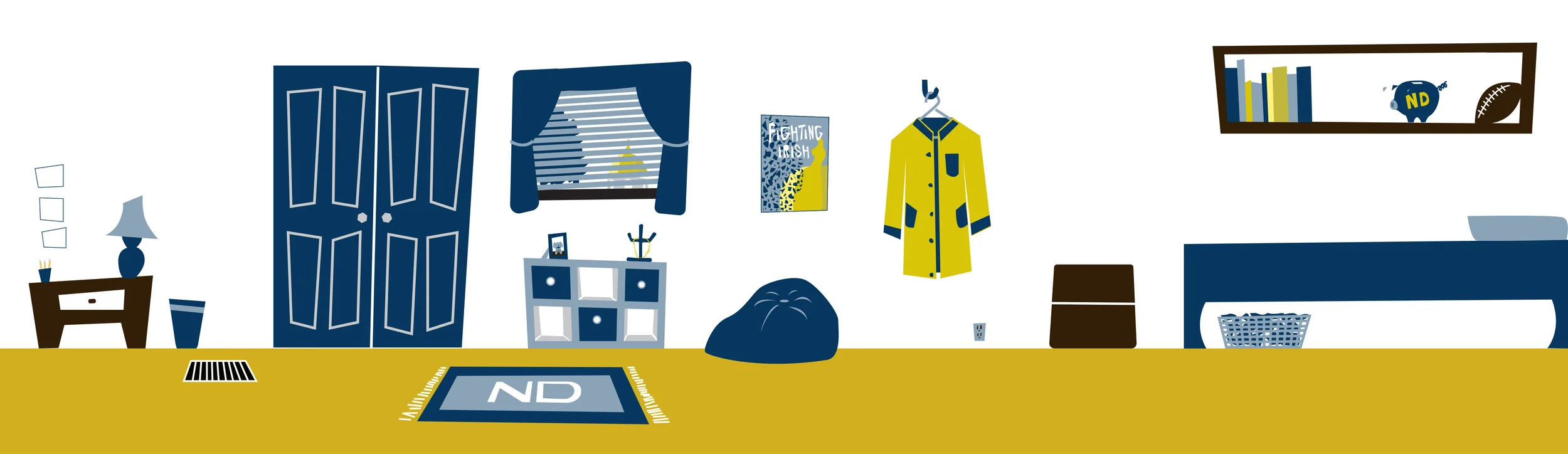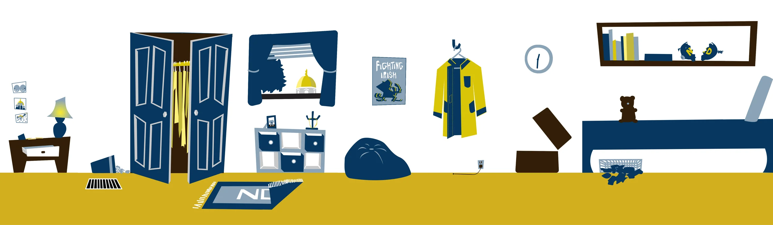 I wanted to create a highly interactive, story based game. In order to achieve this, I needed to div out my entire scene, which required me to have the finalized artwork complete prior to the actual web design. Game Day Dash takes someone through “your” room during a Notre Dame football game day to search for items throughout the room. This game